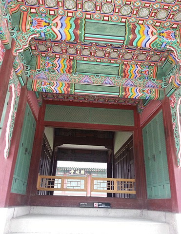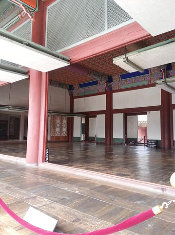 内部就是这样~地面上铺满了整块的石板,整个景福宫里面的造型和故宫的构造很相似呢!里面干净整洁,透过墙上的窗能看到宫殿内部的结构。虽然无法入内,那就拍张照片留念~