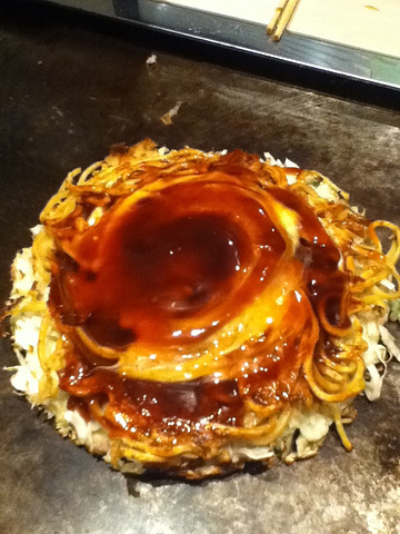 午饭就在塔谷公园附近的一家日本料理店解决啦~昨天是泰式,今天就日式啦!我们吃到了日本原汁原味的蛋包饭,还有炒面~都是在桌子上的铁板上烧好,然后直接吃!哈哈有点铁板烧的感觉的,但是和铁板烧又完全不一样!