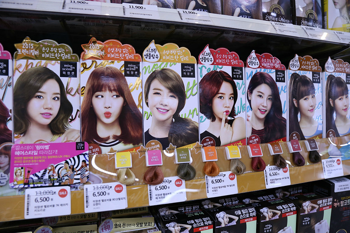 然后我那个喜欢染发的闺蜜见到这些又走不动路了……话说她真的喜欢染发,特别喜欢DIY,帮她染她看不到的后面之类的活儿我可没少干!哈哈,而且这些染发剂还在打折,便宜了几乎一半呢!她收了好几个~