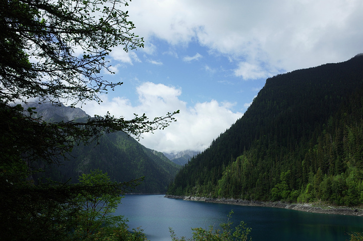 长海——九寨沟最长的一个海子,长达四公里多,呈墨蓝色,“S”形分布。岸旁林木茂密,一眼望去,水似明镜,巍巍雪峰,沐浴在蓝天白云之中,壮观奇丽