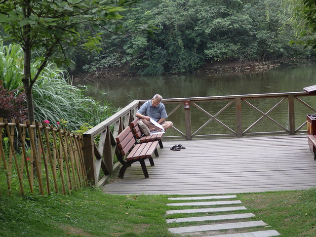 天鹅湖边上,一位老爷爷很安静的看着他的报纸。觉得特别随性,拍了一张。