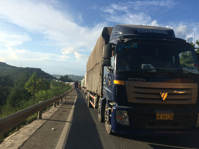 在这儿堵了两个多小时,听大车的司机师傅侃走南闯北小时候掏鸟蛋的故事。堵在一堆钢铁机械中,感觉人力是那么渺小,不知道为啥,这时候大车师傅的形象格外高大。哈哈,不过他们的确辛苦,每天风吹日晒,两个人日夜倒,这么练,技术哪儿能不好呢