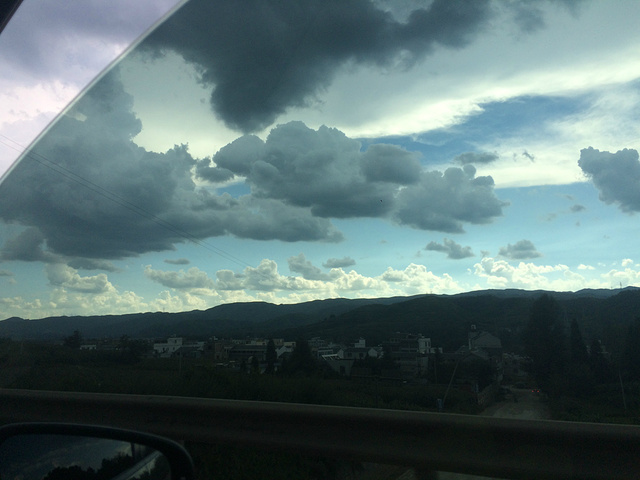 到云南啦,心里默念:彩云之南!彩云之南!(有点小困惑,不是叫“白云”更贴切么~~)——多漂亮的云彩啊。景色也好,从四川境内正常的农家山院,到不经意一瞥就是画儿一样的景致