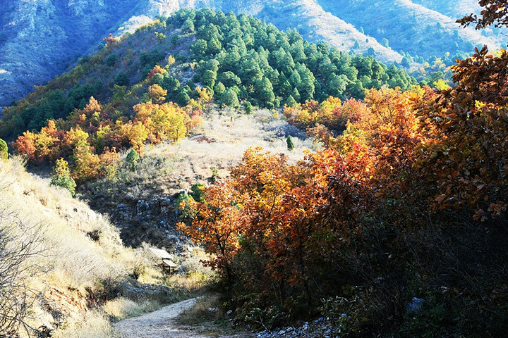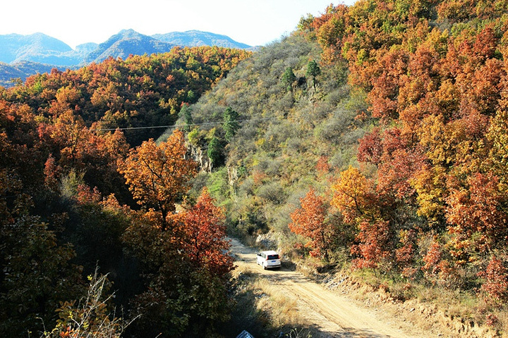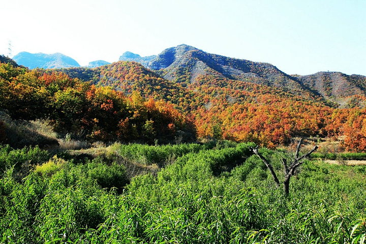 今年的秋天比较暖和,野三坡很多红叶还没有红。野三坡的红叶主要由黄栌、枫树、栎树、火炬树、爬山虎等组成。目前公路两侧的爬山虎的红叶以接近尾声,公路两侧的火炬手部分叶子已经变红。山顶的黄栌叶子以红艳艳,大面积的栎树还是绿色,估计下周就可以看到满山的红叶了。