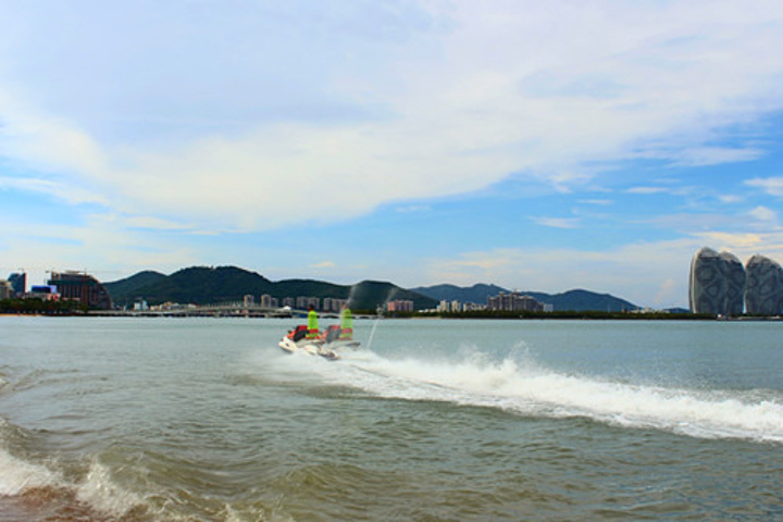 但就在这个时候,一位骑水上摩托的帅小伙驶了过来。摩托艇一个摆尾又一个摆尾激起的层层海浪把离家出走的鞋又给送了回来。