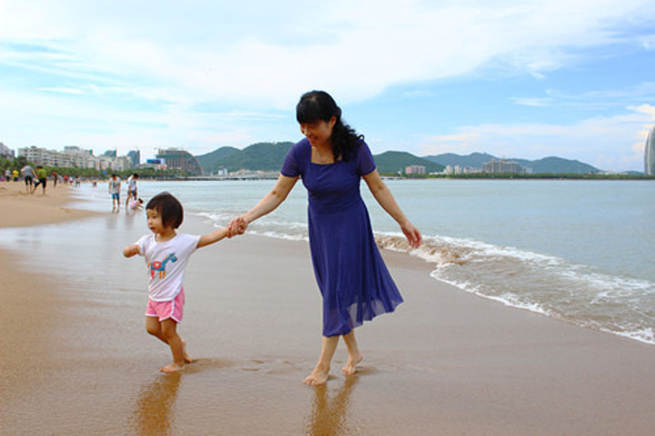 大东海,上次来就住大东海,交通很方便,到哪都较近。属于中间位置。下海游泳的人比较多。