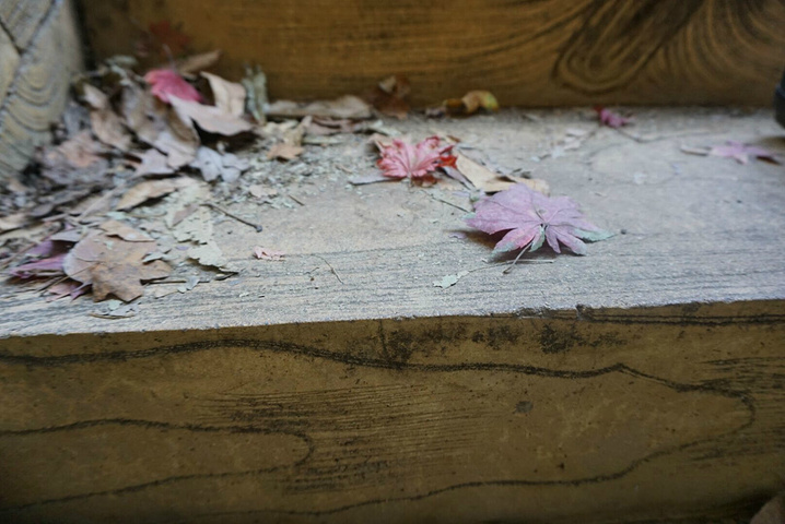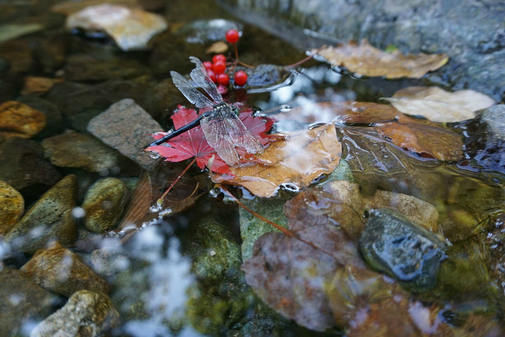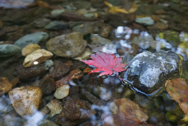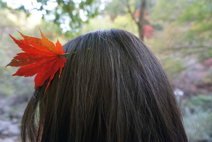 捡起一片枫叶给好朋友摆拍。沾一沾枫叶的美面。