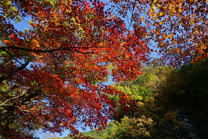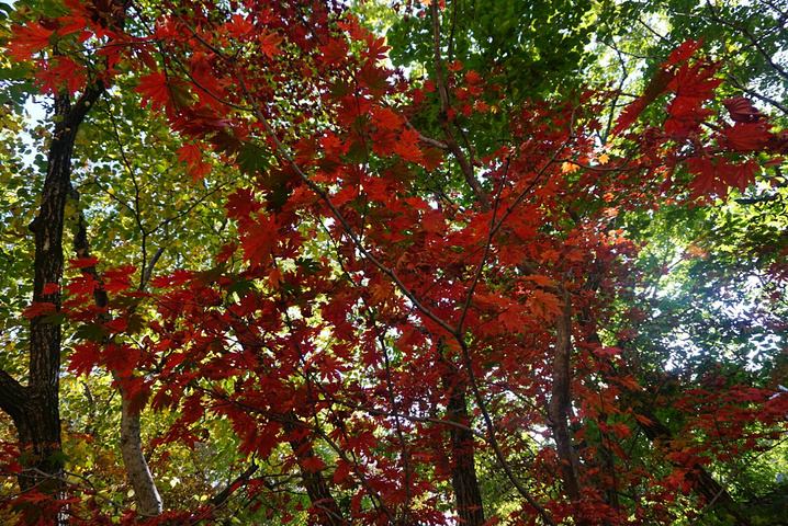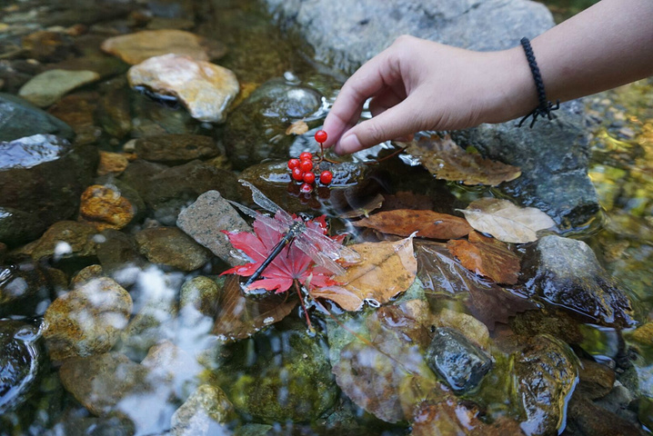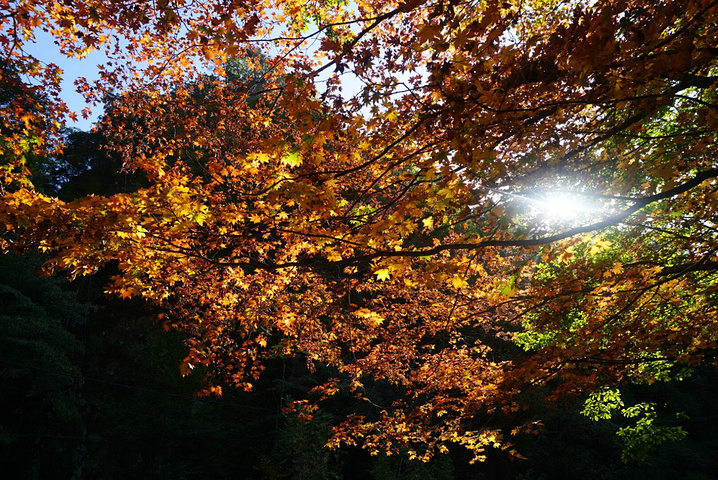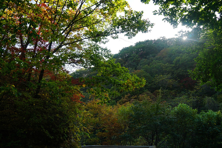 到本溪后,坐16路公交车到东芬即可搭班车到关门山景区,在本溪火车站外也有很多私车问你到不到景区(不知道路还可以问热情善良的本溪阿姨;班车条件不太好,有气味,要坐一个多小时,哎)。景区门票九十,可买学生票。吃了饭可以在景区门口饭店买几个茶叶蛋带上去补充体力。