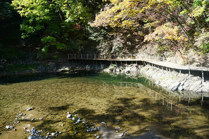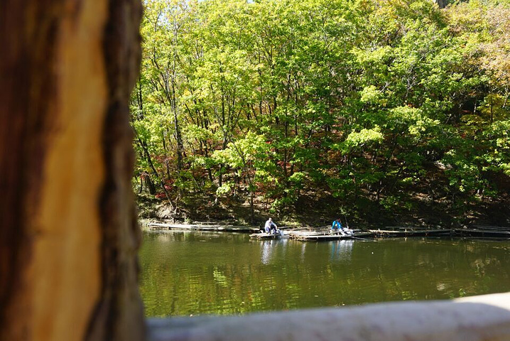 景区入门不远有栈道,栈道适合摆拍。小湖里可以划船。