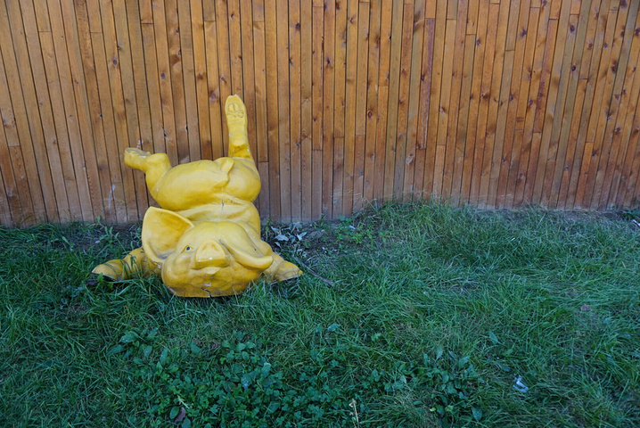 景区门口的猪,这里附件有厕所和上山的车,十元一人,建议走上山,再坐无门的观光车下山,会非常爽。