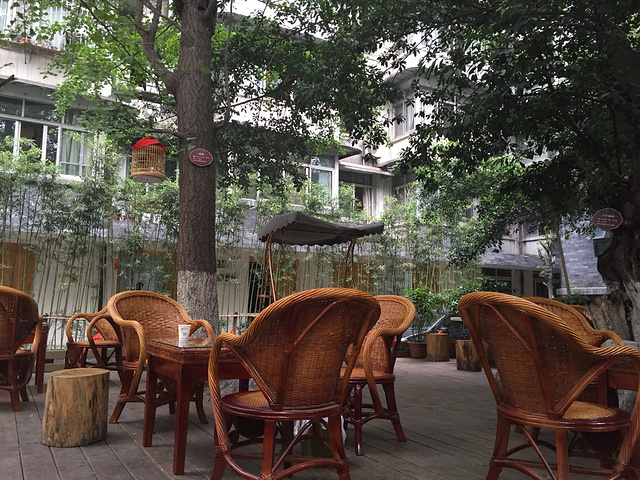 酒店里有个好巴适的院子,摆上茶桌椅子,一晃就是大半天。