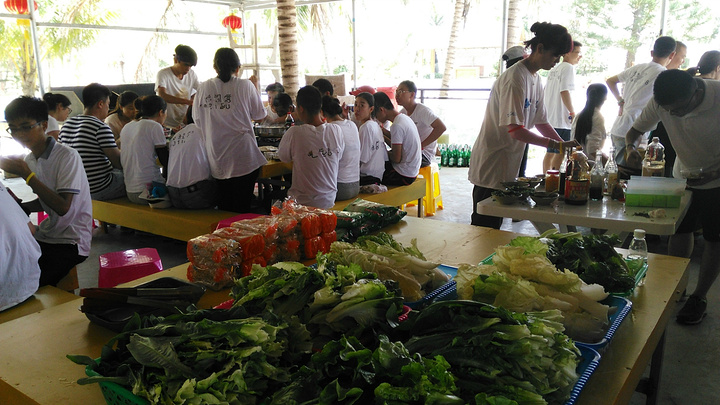 然后我们到了酒店的后花园到达目的地 猴岛湾户外拓展露营基地