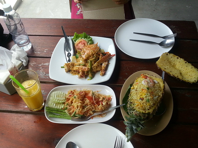 班之这边唯一好的就是满眼绿色 退了房 我们又去了 racha那边的海滩 不过因为国庆 明显人比昨天多了起来拍了几张照片 吃了拐角的冰激凌 貌似也比之前看的攻略涨价了 120猪一个球 然后就跑到岩石上面的餐厅吃饭去了 那里好多野猫 特别聪明 就在你脚下带着 看着你吃螃蟹 眼神那叫一个可怜 于是偷偷给了点螃蟹腿 回来的路上也看到了大蜥蜴 超级胖 短腿 超级萌