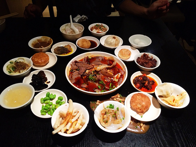 夫妻肺片、龙抄手、钟水饺、川北凉粉、担担面、香辣兔丁、甜水面、赖汤圆、油炸锅魁、等等 总共19样。