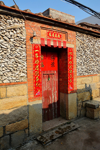 这个闽南红砖厝的古厝那老人家说前不久才照以前的样子翻修了好几百万呢,鲜红的红砖,白色的生蚝壳,构成了这个富有闽南特色又有浔埔遗风的墙表。
