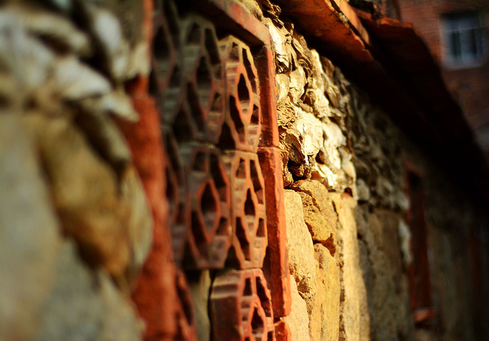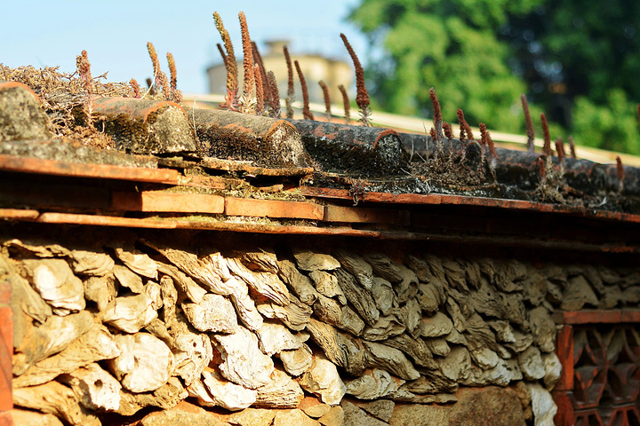几株小草从瓦上中伸展出来,在夕阳的微风中摇曳,给沧桑的老房子添加几分生机和灵动。