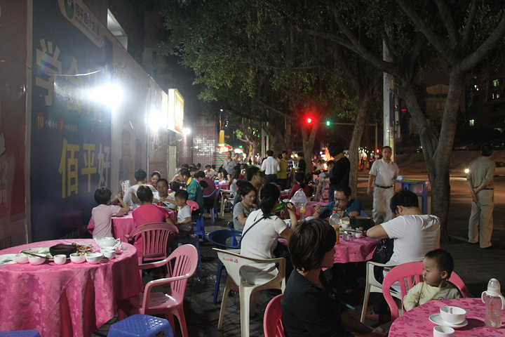 走了几百米,过了步行街,过了黄氏书室,过了丽日购物广场,来到塘尾街。果然,食肆林立。腿走酸了,老婆更喊累,不愿挑三拣四,见街口的晓斌大排档生意火爆,十多桌都坐满了人,便在唯一的一张空桌前落座。