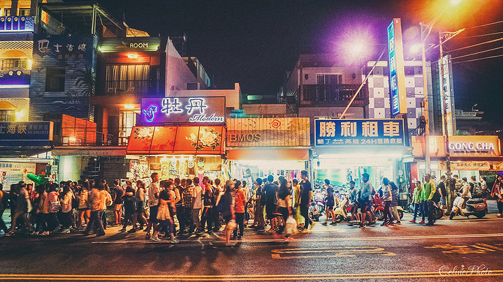 垦丁大街的夜市,人潮涌动,似乎集中了全台湾的夜市经典美食。