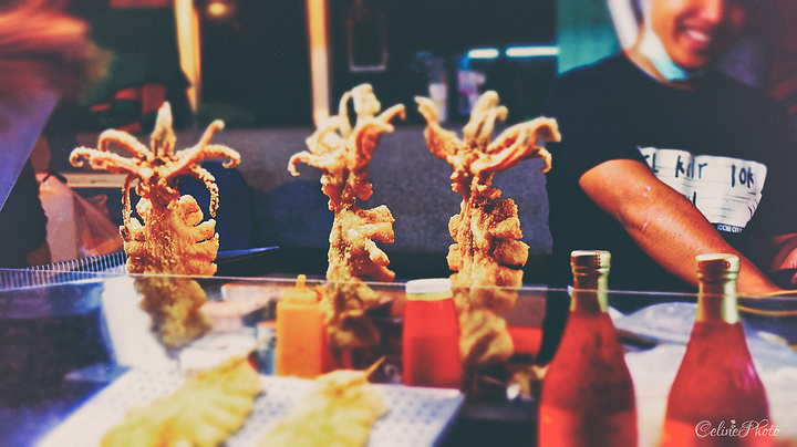 就一直骑到了垦丁大街。热闹的夜市摊位早已一字排开,等待着人们饕餮。溜达了好几圈,还是脱离不了烧烤煎炸与木瓜牛奶的套系,最终选择了这款美食。我想说,真的好吃到路哭!烤得又酥又脆的薯皮,包裹着的绵滑的马铃薯心,还有又香又浓的芝士……这种我第二天又去专门买了一个来吃的事情我会告诉你吗!强烈推荐这家“现烤马铃薯”!在我吃过的为数不多的台湾夜市美食里,我给它点100个赞。