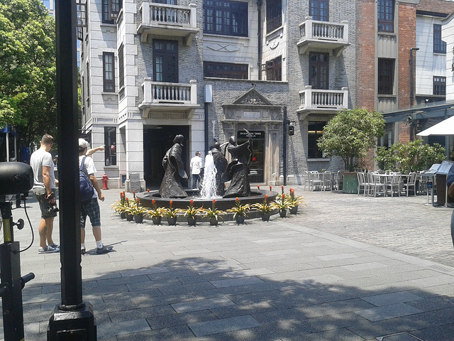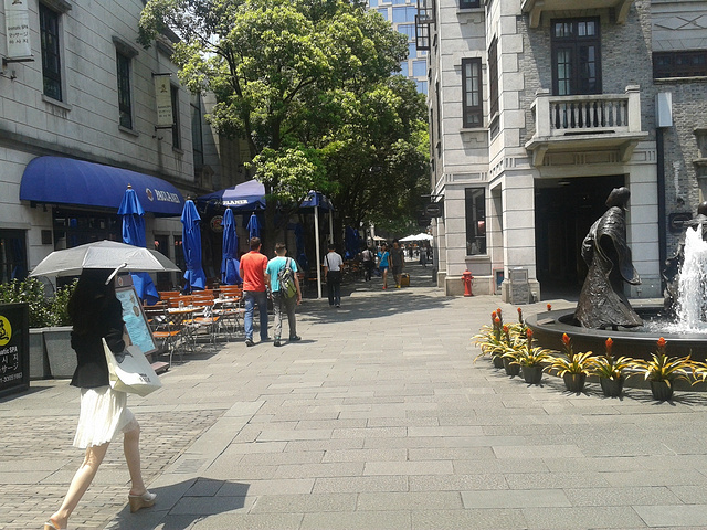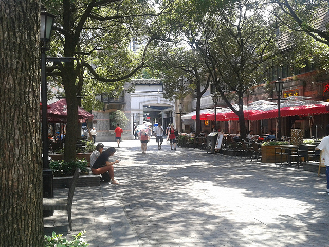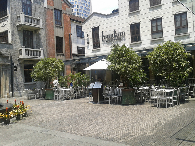 上海新天地是个新地标,白天去没什么意思,很多店都是不开门的,这里的消费据说有高有低,这里有很多酒吧,都是年轻人晚上来消遣的地方。具体来说其实我们是来看过去的建筑的,这一带的建筑很特别,叫做石库门。很有一番风味。来自游记苏州上海之行