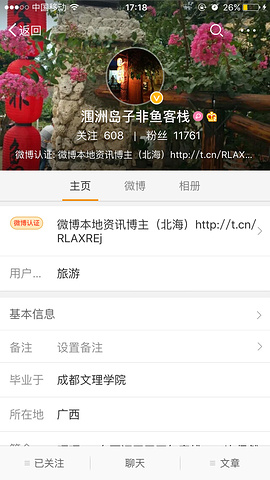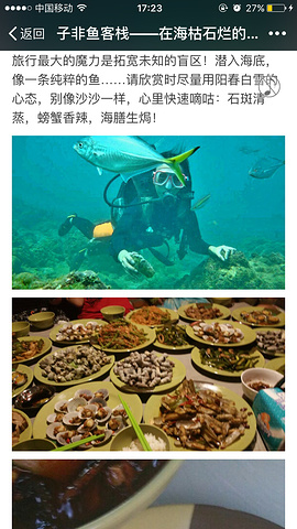 这是我们在岛上发现的第二家客栈,老板是个美女姐姐“沙沙”这个客栈有的家庭式公寓这个是“沙沙”姐新浪官方微博子非鱼客栈100/人/天是含餐,小孩半费哟!也就是说,150.00元包括您和孩子一日三餐,和住宿(现在淡季的价格)来自游记广西南宁、北海、涠洲岛