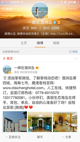 老板“一辉哥”是个成都人哦从码头到海角七号客栈要做三轮车车费大概30元,这是上面有电话,和定客栈的方法,也是可以提前预定的这是老板“一辉哥”新浪的官方微博这是海角七号和鹿港的照片鹿港全景图来自游记广西南宁、北海、涠洲岛