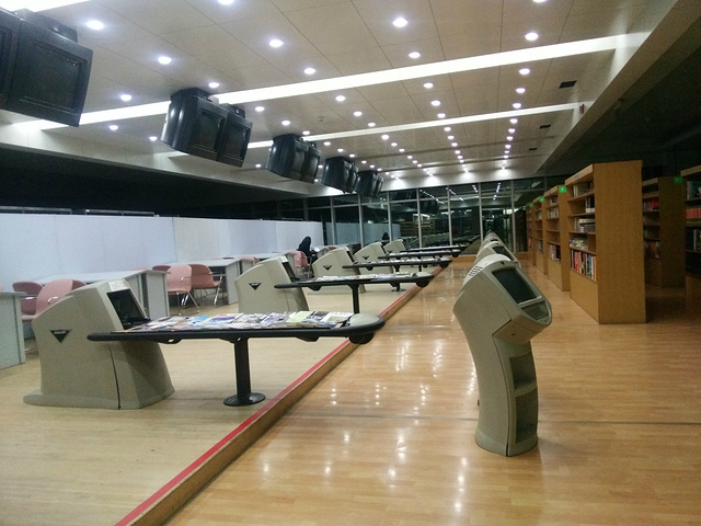 在羽毛球室和台球室的中间位置,有一个图书室,服务员说是免费对外开放的,里面有杂志、报纸、书籍,还有很多可以安安静静看书的位子。