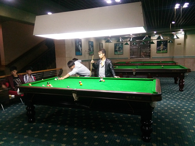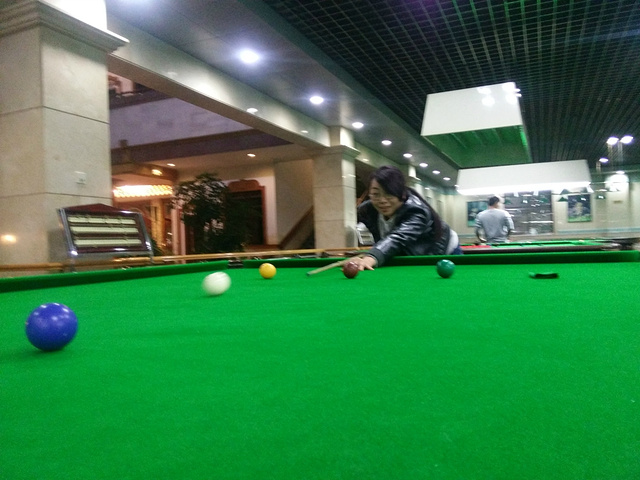 我们刚吃完饭,不适合马上就做剧烈的运动,就先打会台球,我是打的不怎么好,只能说是略懂,可以打几下。红烟俱乐部的台球收费是15元/小时,价格便宜。