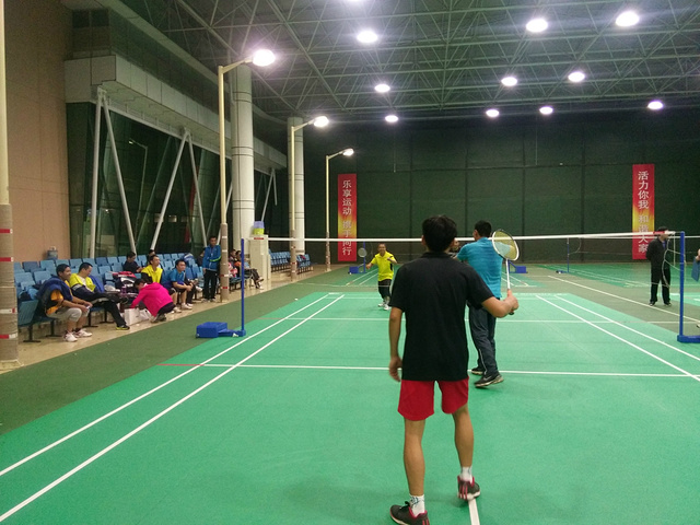 这里有羽毛球室和气排球室,还有台球室,晚上来运动的人比较多,人们都越来越崇尚运动,健康永远都是第一位的,我们都该多运动。