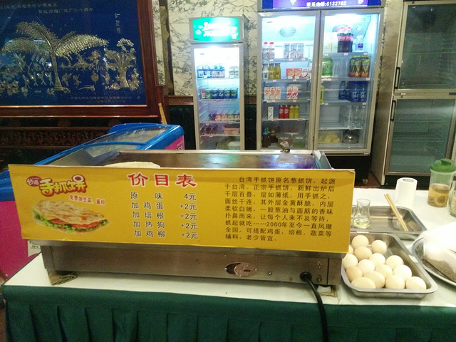 进入红烟俱乐部,还有卖各种饮料和小吃的一个点,我们太撑了,不然想吃一个手抓饼,看着很美味。红烟俱乐部里面有乒乓球室、羽毛球室、气排球室、台球室,朋友说三楼还有舞厅、OK厅、酒吧,朋友说20年前,这里可是最豪华的娱乐场所,里面运动类、娱乐类都很齐全。