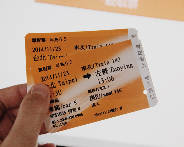 还有就是在台湾期间的高铁和台铁,这就要求在台的每天的行程都计划好才可以,我定的是11.23台北--左营(高雄车站,要去垦丁还要搭一班垦丁快线)的高铁票和11.27花莲---台北的台铁票。高铁提前28天定可抢到65折的早鸟票,台铁是提前14天可在网上购买,台铁推荐自强号,比较快。