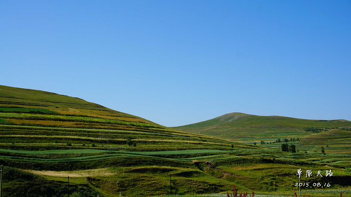 白色的花不知道是什么植物~最开始以为是一列火车,仔细一看,不是,是一排房子、~我就想知道,生活在这个村子里是一种什么样的感觉?来张全景~体验草原之美!笔直的公路~趁车少,赶紧来张!一直开了5个多小时,才开出野狐岭,这一路真的很美~来自游记蓝天白云和绿草,草原天路我们来啦!~