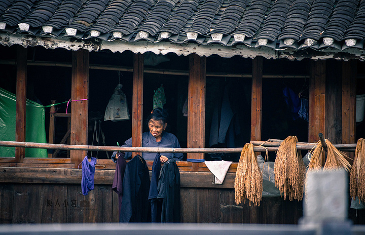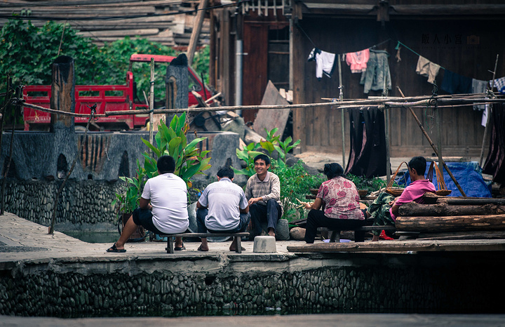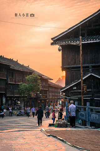 侗寨中心,是一条小河,两旁林立着木屋,一座座小桥横跨其上,河边不时有妇女在洗衣涮菜,乍一看,还以为来到了江南水乡。傍晚的光线愈发温柔金黄,小寨的一切都像是披上了一层金色的衣裳,忙碌了一天的侗族人纷纷从外面赶回寨子,孩子们放了学,老人们则继续聊着天,桥头上卖菜的大妈们迎来最忙碌的时候,而袅袅炊烟伴着阵阵香气更是让整座侗寨变得愈发惬意。尽管已经有不少背包客以及国外旅行者到访这座小寨,但这里的商业气息并不浓,面对来来往往的外来人们,寨子的侗族百姓丝毫不多加在意,而是依旧过着自己的生活,并没有发生任何改变,这也是这座小寨如此富有生活气息的最大原因。