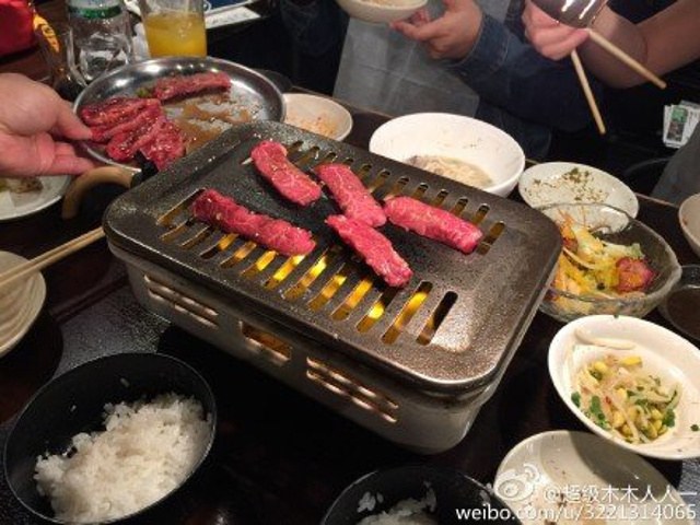 2人以上可以点会席套餐,按人头收费,都是配好的肉,比较省心。我们担心两个女生饭量小,就问了一下,原来可以4人只有两人点套餐,另两人单点一点点东西。所以女生们象征性的点了沙拉和面,肉就靠套餐。这样还省了不少开支,套餐一人要3500日元呢。