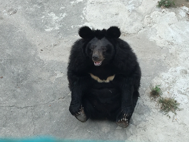 为了要食物,会摆造型的大黑熊