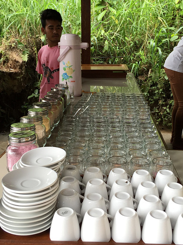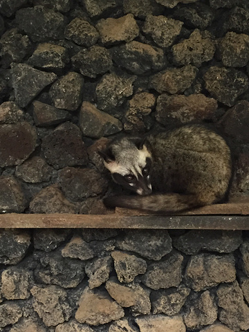 中午我们带到了一个很有民族特色的火山餐厅吃饭,依旧是各色聆郎满目的联合国自助,山景房,特色菜,一应俱全,美不胜收。饭后,大家自由活动,各处拍照留念之后,我们又踏上了旅程,前往猫屎咖啡生产院,这个全世界最贵的咖啡,听过,知道,却没见过他的生产基地,在车上小睡1小时后,来到了咖啡园,每个人免费品尝了先煮咖啡,看到了稀奇的麝香猫,了解了加工过程,增长了见闻。庭院小憩,品尝咖啡,谈天说地,一段美好的下午茶时光,那调调就是调调。