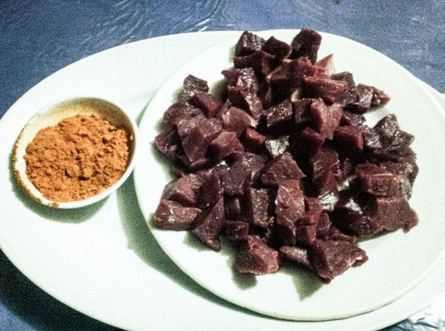 在这边见着个好吃的,生牛肉。这是当地传统的吃法,生牛肉直接切成小块,蘸辣椒粉吃,或者是一种草绿色的像芥末的酱汁,那种更好吃一些,其实吃的时候别想着这是生牛肉,就当做是金枪鱼刺身,就容易咽下去了。看起来挺像的,吃起来也挺像的。还不错,推荐尝试一下。