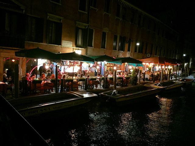 威尼斯晚上运河边的大排档还是蛮多的