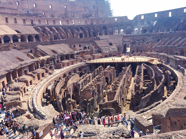 跟我之前教科书中想想的古罗马斗兽场有点不一样.书上说灌进水这里可以海战.平时可以用来人兽大战,奴隶绝对.这环境怎么打呢..很多建筑都缺失了