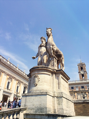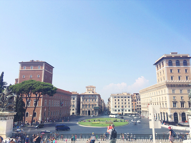 这就是威尼斯广场了.宏伟的白色建筑在蓝天的映衬下非常美丽壮观,可以到达罗马的制高点。这就是维托里安诺纪念堂Vittoriano.罗马人叫它为“结婚蛋糕”或者“打字机”。