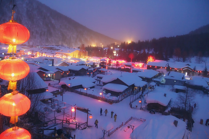 里面有一个制高点,可以俯瞰雪乡夜景!
