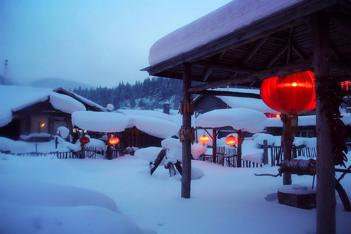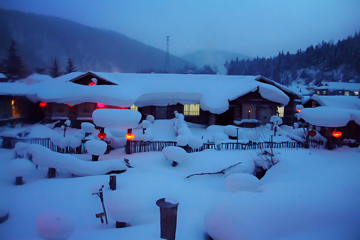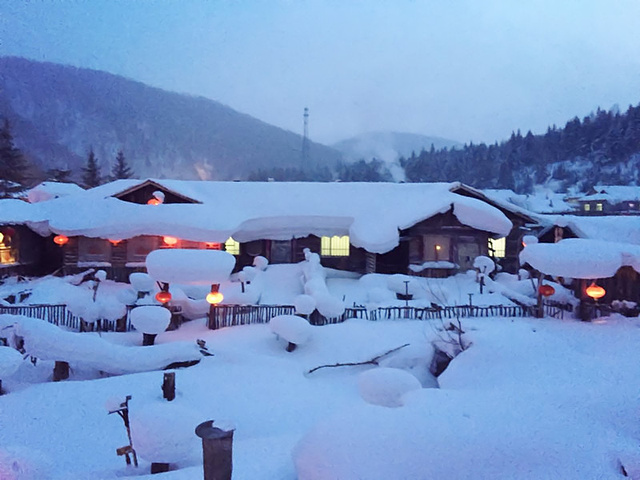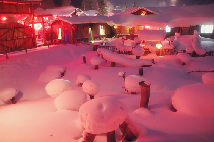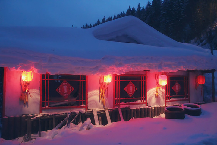 大雪给雪乡的每一所房子都重新安上了全新、特别的屋檐!