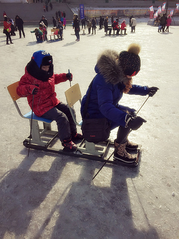 接下来,我们玩了滑圈。一大一小得100元,有时间限制的,好像是半个小时左右。附赠冰刀票一张!