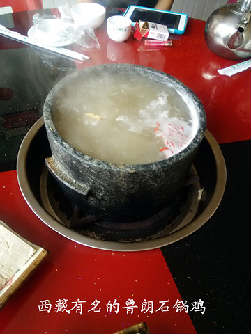 景区门口不远处有好多的饭店,这就是西藏最著名的美食:鲁朗石锅鸡。师傅介绍我们去了一家正宗藏民开的饭店,进去后就迫不及待点了一个大锅。