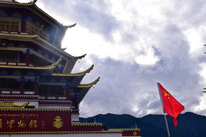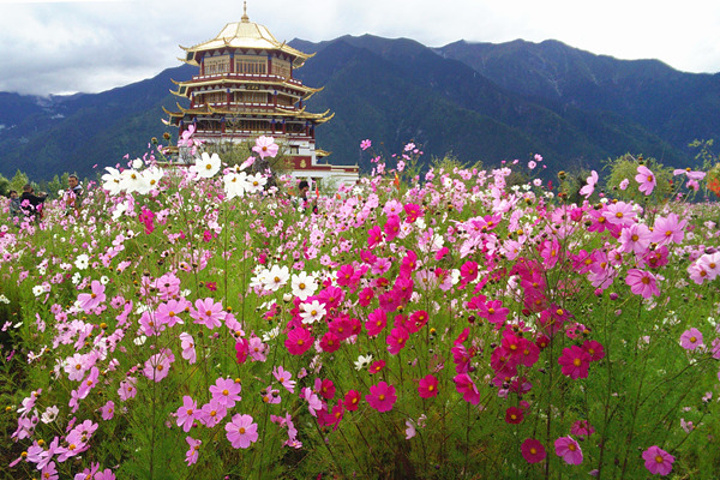 继续下一站:苯日神山。虽说叫苯日神山,其实并没有上山,而是一处能远观神山的花园,里面除了遍地的格桑花就是一座藏南博物馆!