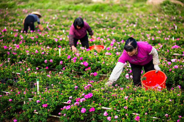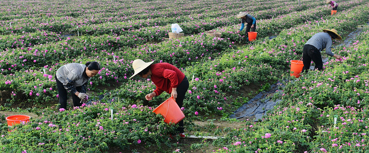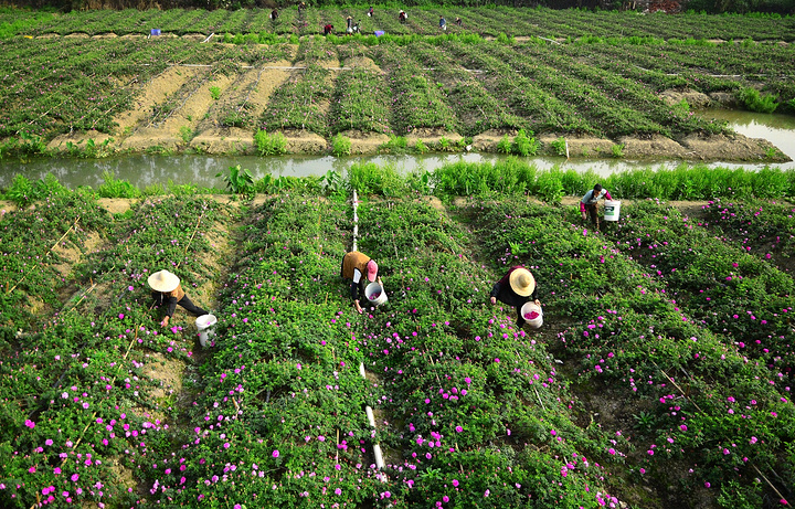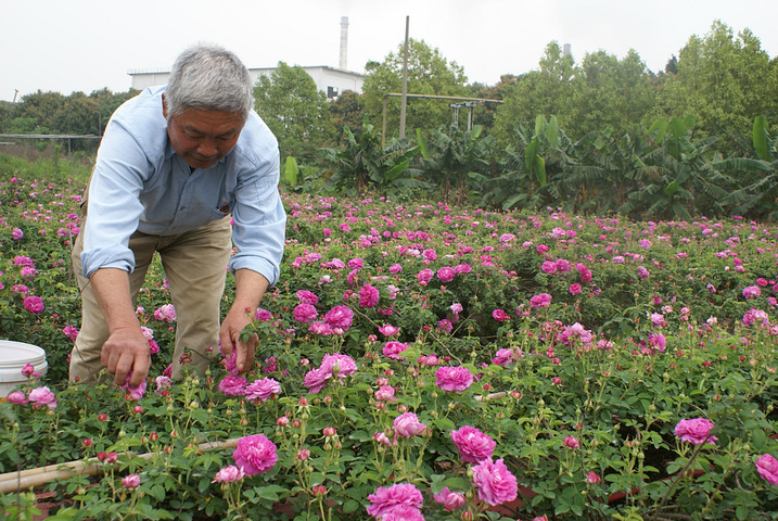 中山市领导与花农一起采摘荼薇花