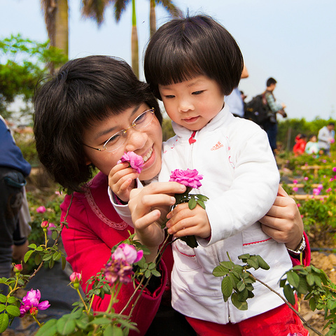 中山市领导采摘荼薇花.