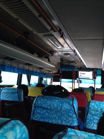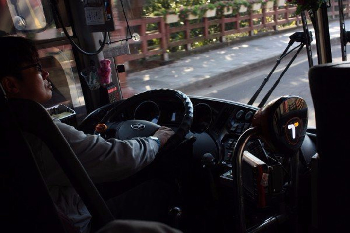 济州岛的公交车。上车的时候我给司机看了一下韩文要去的景点名字,然后给他看了到站叫我的韩文,司机哈哈大笑,善意点头。根据要去的地区,司机会在刷卡机器上输入车费金额,然后用T-MONEY卡滴一下即可