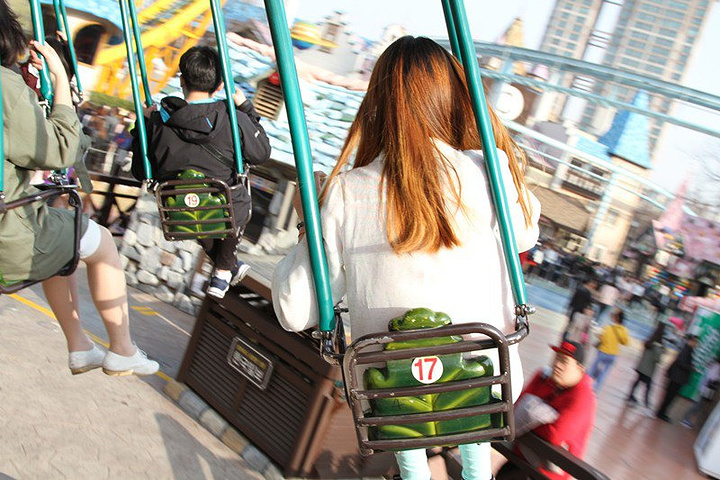 旋转秋千,乘坐叶子形状的秋千在空中旋转,下来的时候我要晕了+_+晕车的人慎坐啊