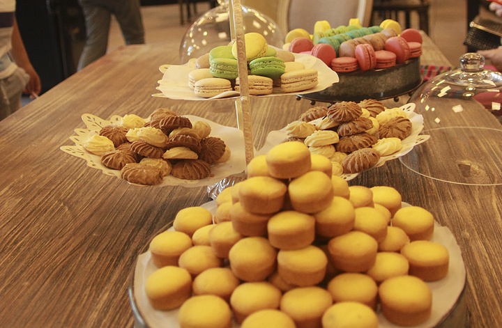 去的时候正好赶上店里面有活动,各色马卡龙和小甜点,简直是吃货福利啊。整间手作馆里都是甜甜的味道还有咖啡香味,店员说每一位进店的客人都会享受到一杯免费的现磨咖啡。(还是朋友的图~)
